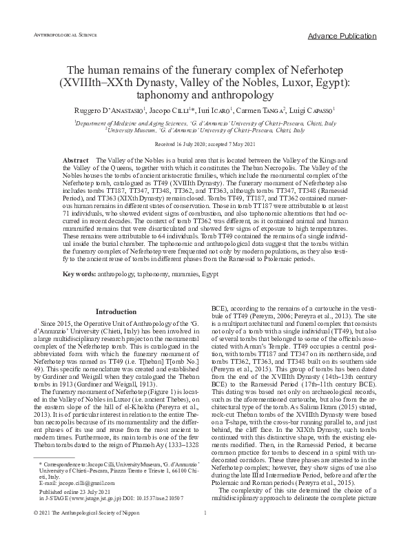 Pdf The Human Remains Of The Funerary Complex Of Neferhotep Xviiith Xxth Dynasty Valley Of The Nobles Luxor Egypt Taphonomy And Anthropology Iuri Icaro And Carmen Tanga Academia Edu